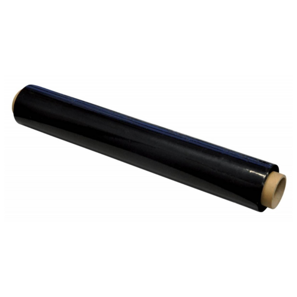 Folie stretch neagra pentru ambalare manuala. Latimea filmului: 50 cm. Grosimea foliei: 23 microni. Extensibilitate: 150%. Greutate folie fara tub: