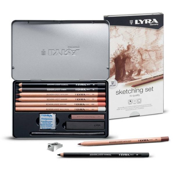 Creioane + accesorii, LYRA Rembrandt, pentru desene si schite, 25piese/cutie metalica-tonuri de gri