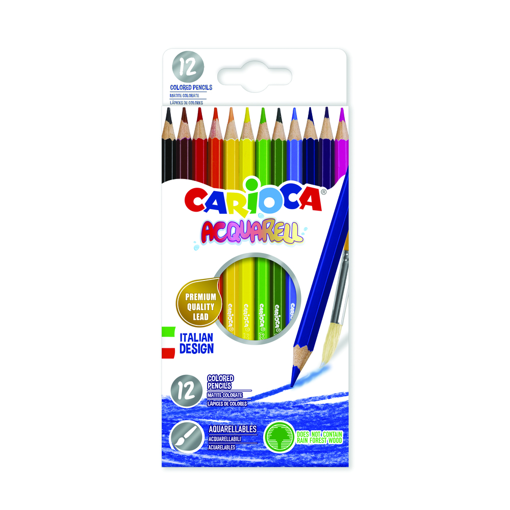 Creioane colorate CARIOCA Acquarell, hexagonale, 12 culori/cutie – cutie carton