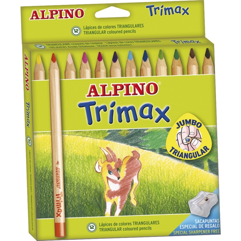 Creioane colorate triunghiulare, cutie carton, 12 culori/set, ALPINO Trimax Jumbo