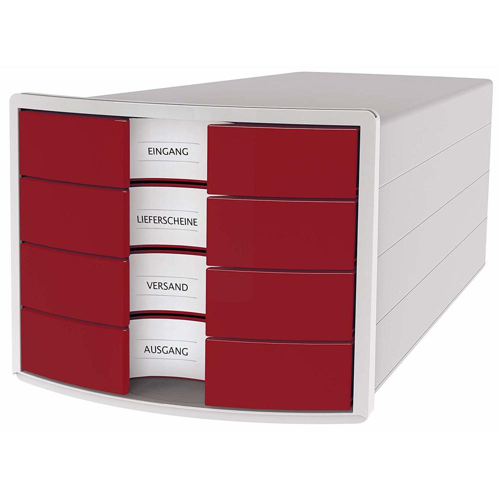 Suport plastic cu 4 sertare pt. documente, HAN Impuls 2.0 – gri deschis – sertare rosii
