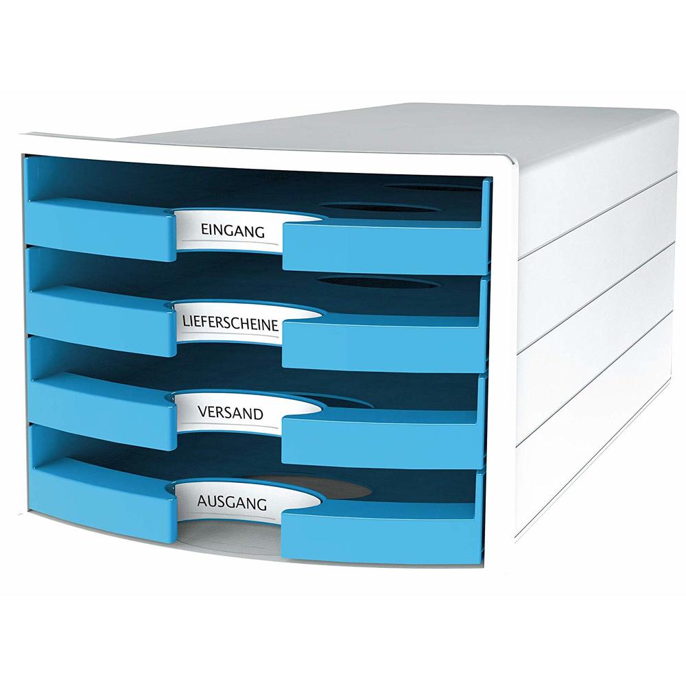 Suport plastic cu 4 sertare pt. documente, HAN Impuls 2.0 (open) – alb – sertare bleu