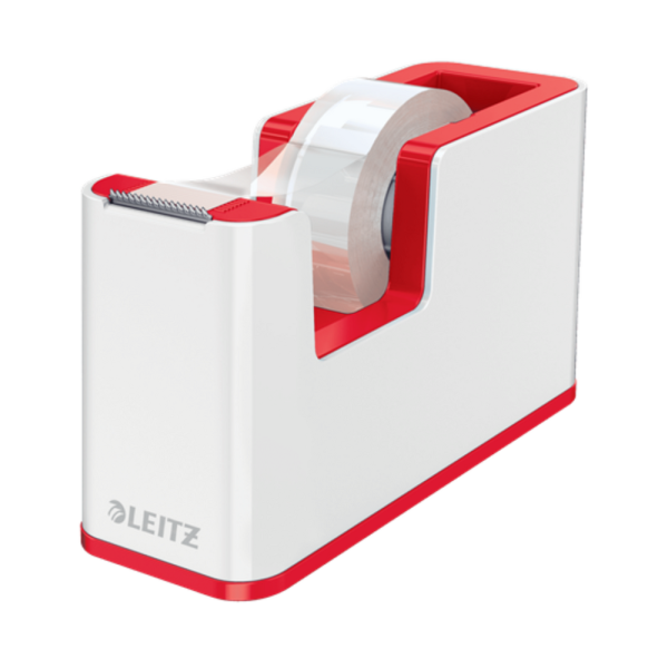Dispenser banda adeziva LEITZ WOW, PS, banda inclusa, culori duale, alb-rosu