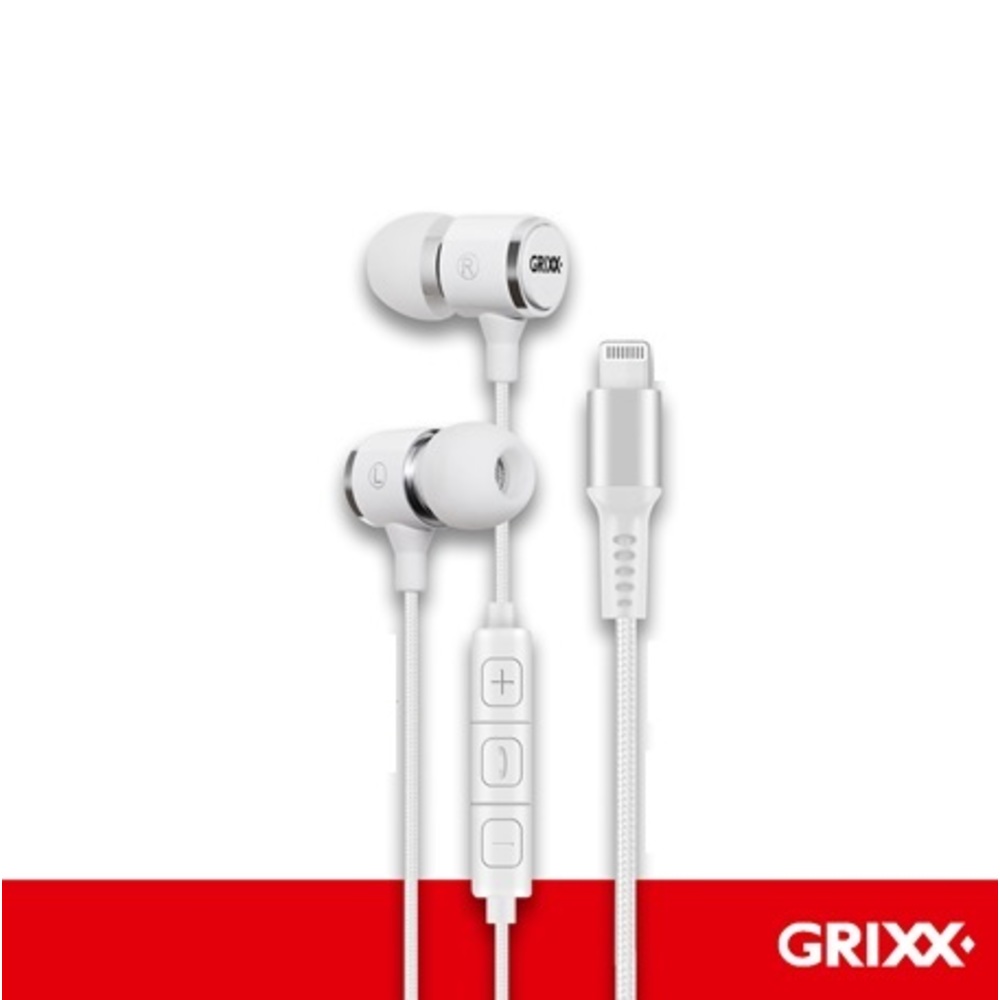 Casti GRIXX – pentru iPhone/iPad/iPod, cu telecomanda si microfon, nylon impletit – albe
