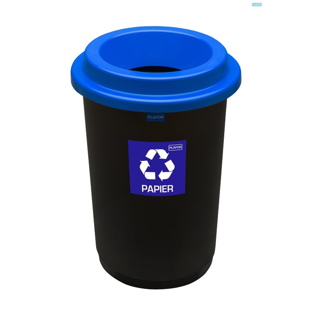 Cos plastic reciclare selectiva, capacitate 50l, PLAFOR Eco – negru cu capac albastru – hartie
