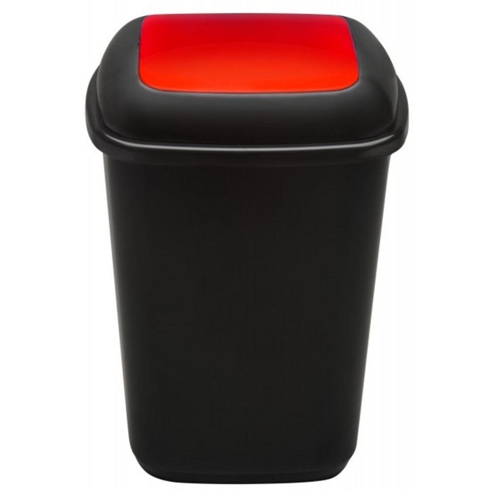 Cos plastic reciclare selectiva, capacitate 90l, PLAFOR Quatro – negru cu capac rosu – metal