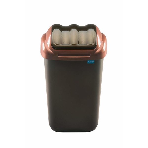 Cos plastic reciclare selectiva, capacitate 28l, PLAFOR Sort – negru cu capac maro – bio