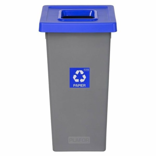Cos plastic reciclare selectiva, capacitate 20l, PLAFOR Fit – gri cu capac albastru – hartie