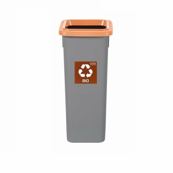 Cos plastic reciclare selectiva, capacitate 20l, PLAFOR Fit – gri cu capac maro – bio