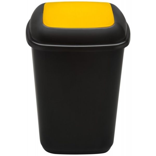 Cos plastic reciclare selectiva, capacitate 90l, PLAFOR Quatro – negru cu capac galben – plastic