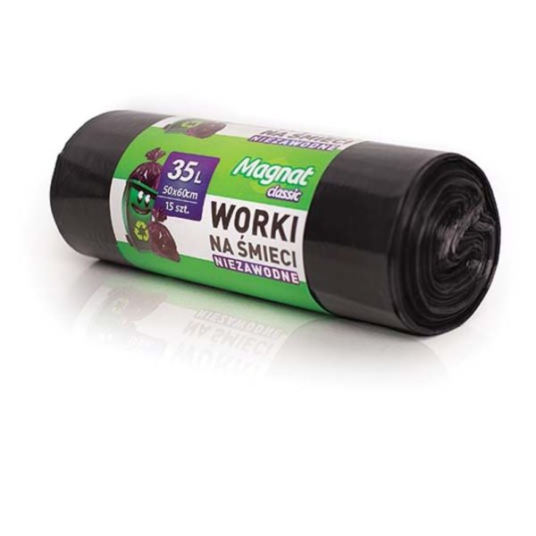 Saci plastic reciclat, standard, 35L, 50x60cm, 20 microni, 15buc/rola, RESACO – negri