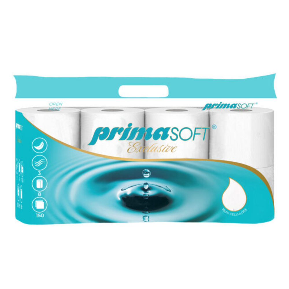 Hartia igienica Prima Soft Exclusive este fabricata din 100% celuloza, avand trei straturi pentru un plus de confort si absorbtie.