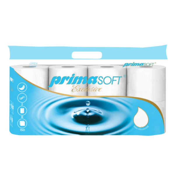 Hartia igienica Prima Soft Exclusive este fabricata din 100% celuloza, avand doua straturi pentru un plus de confort si absorbtie.