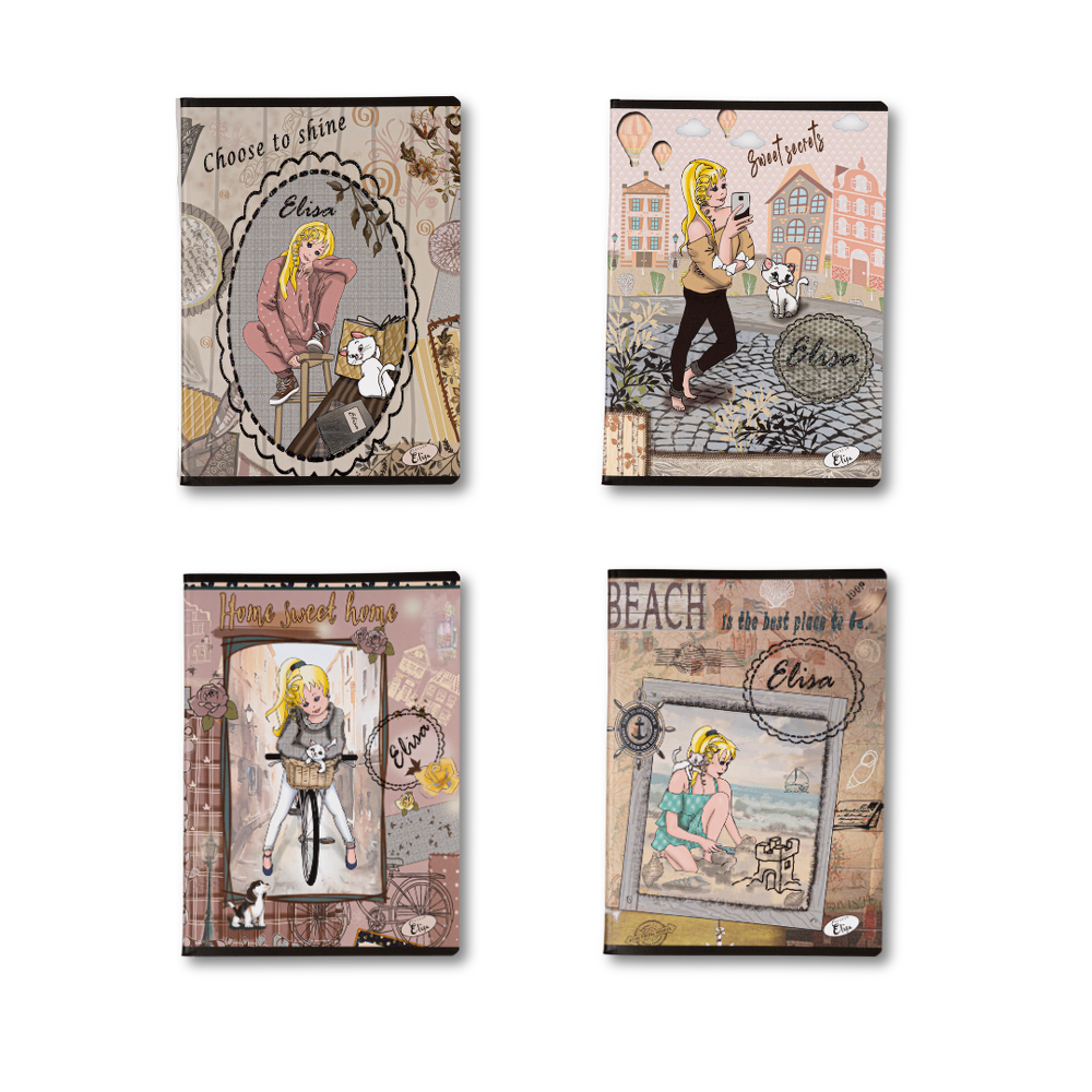 Caiete A5 cu design jucăuș și creativ din colecția Elisa, ideale pentru școală sau birou.