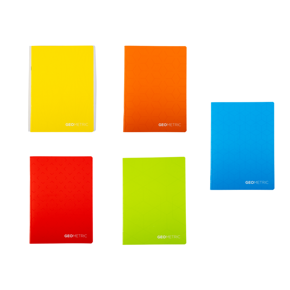 Disponibile în mai multe culori și modele din colecția Geometrics, fiecare set conține 10 caiete.