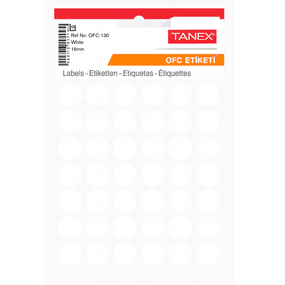 Etichete autoadezive albe, D16 mm, 480 buc/set, TANEX