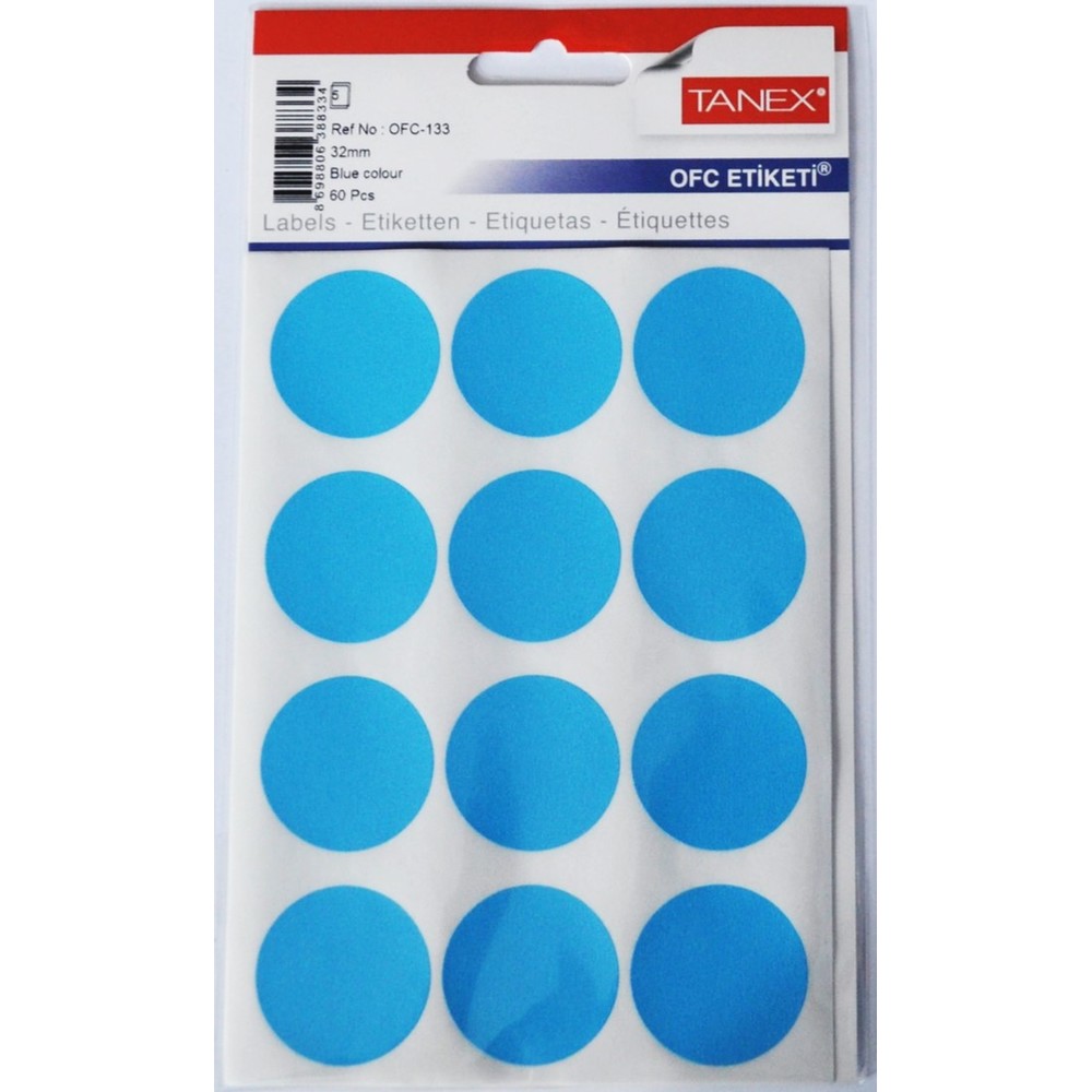Etichete autoadezive color, D32 mm, 60 buc/set, TANEX – albastru
