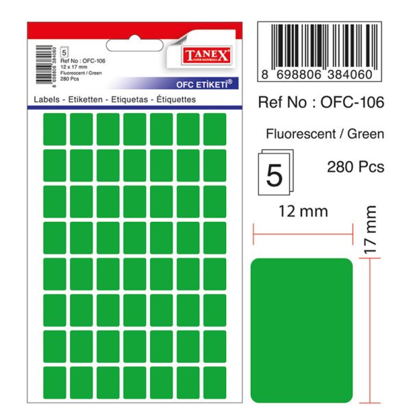 Etichete autoadezive color, 12 x 17 mm, 280 buc/set, TANEX – verde fluorescent