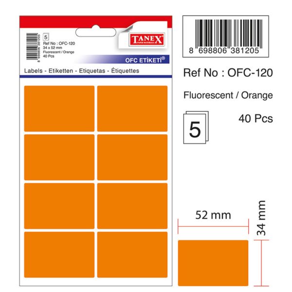 Etichete autoadezive color, 34 x 52 mm, 40 buc/set, TANEX – orange fluorescent