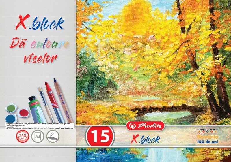 Bloc de desen X.Block, format A3, 15 file, 250 grame/mp, coperta policromie.