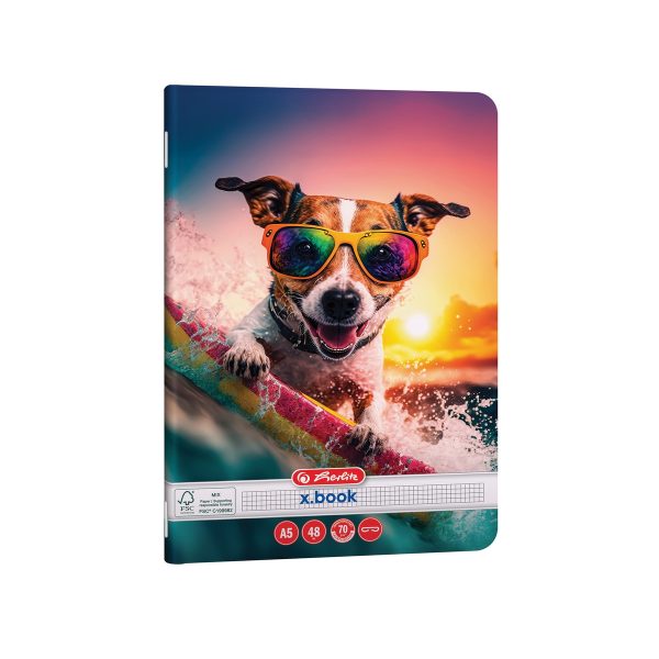 Caiet, format A5, coperti din carton dublu cretat, lucios, colturi rotunjite, hartie 70 g/mp, 48 file, dictando, capsat, motiv Cool