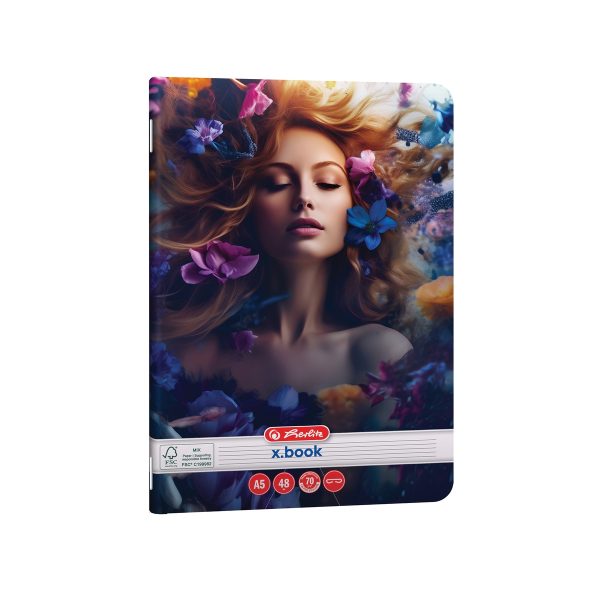 Caiet, format A5, coperti din carton dublu cretat, lucios, colturi rotunjite, hartie 70 g/mp, 48 file, dictando, capsat, motiv Beauty.