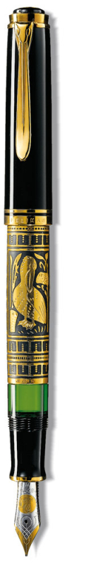 STILOU SOUVERAN M1000 M,PENITA AUR18K,ACCESORII PLACATE CU AUR,CORP NEGRU-VERDE