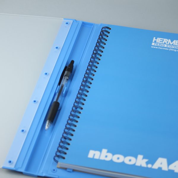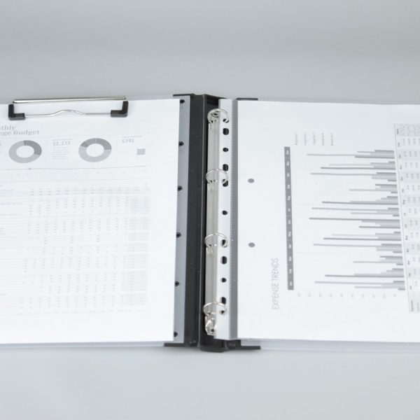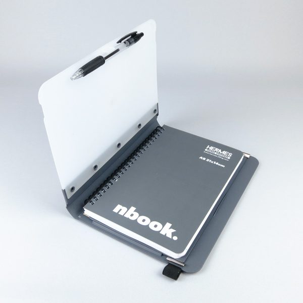 Caiet mecanic A4 cu 4 inele si clipboard Hermes negru