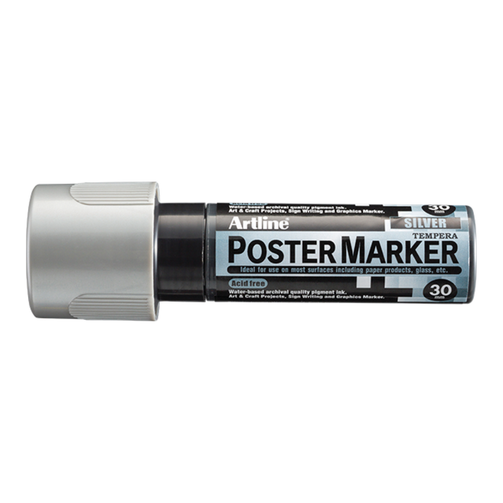 Marker pentru poster ARTLINE, corp plastic, varf tesit 30mm – argintiu