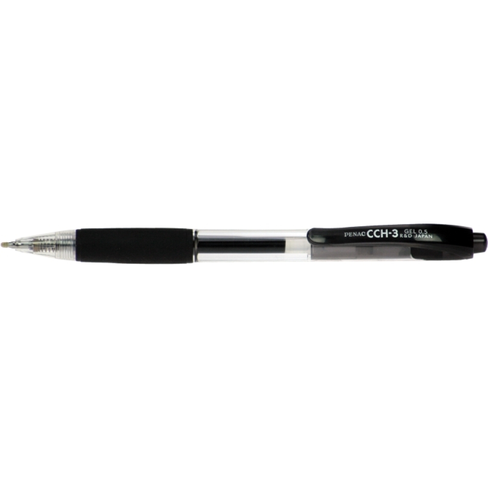 Pix cu gel PENAC CCH-3, rubber grip, 0.5mm, corp transparent, accesorii negre, scriere neagra