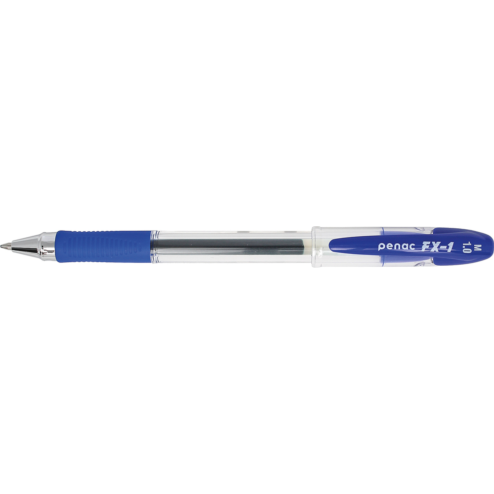 Pix cu gel PENAC FX-1, rubber grip, 1.0mm, con metalic, corp transparent – scriere albastra