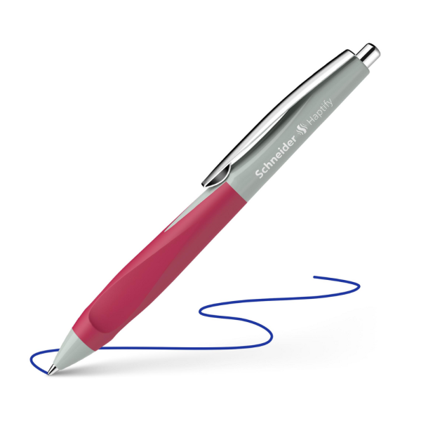 Pix SCHNEIDER Haptify, rubber grip, clema metalica, corp gri/magenta – scriere albastra