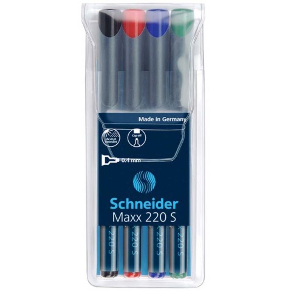 Universal permanent marker SCHNEIDER Maxx 220 S, varf 0.4mm, 4 culori/set – (N, R, A, V)