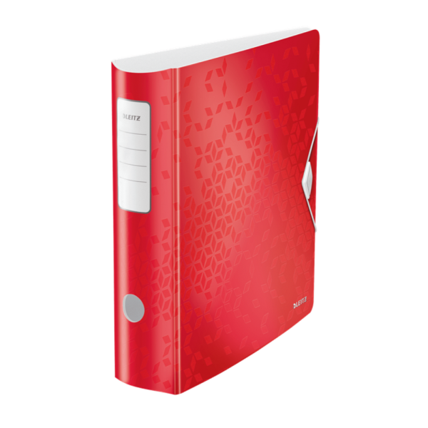 Biblioraft LEITZ 180 WOW, carton laminat, partial reciclat, FSC, A4, 80 mm, rosu