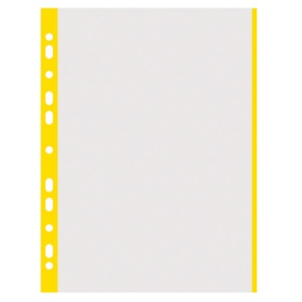 Folie protectie transparenta, cu margine color, 40 microni, 100 folii/set, DONAU – margine galbena