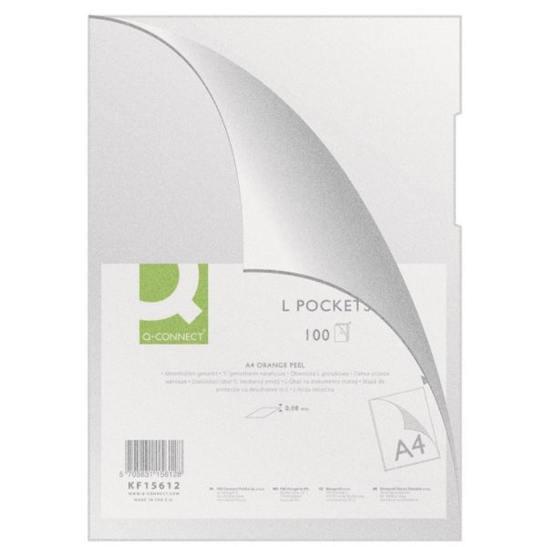 Folie protectie “L” pentru documente A4, 150 microni, 100 folii/set, Q-Connect – cristal