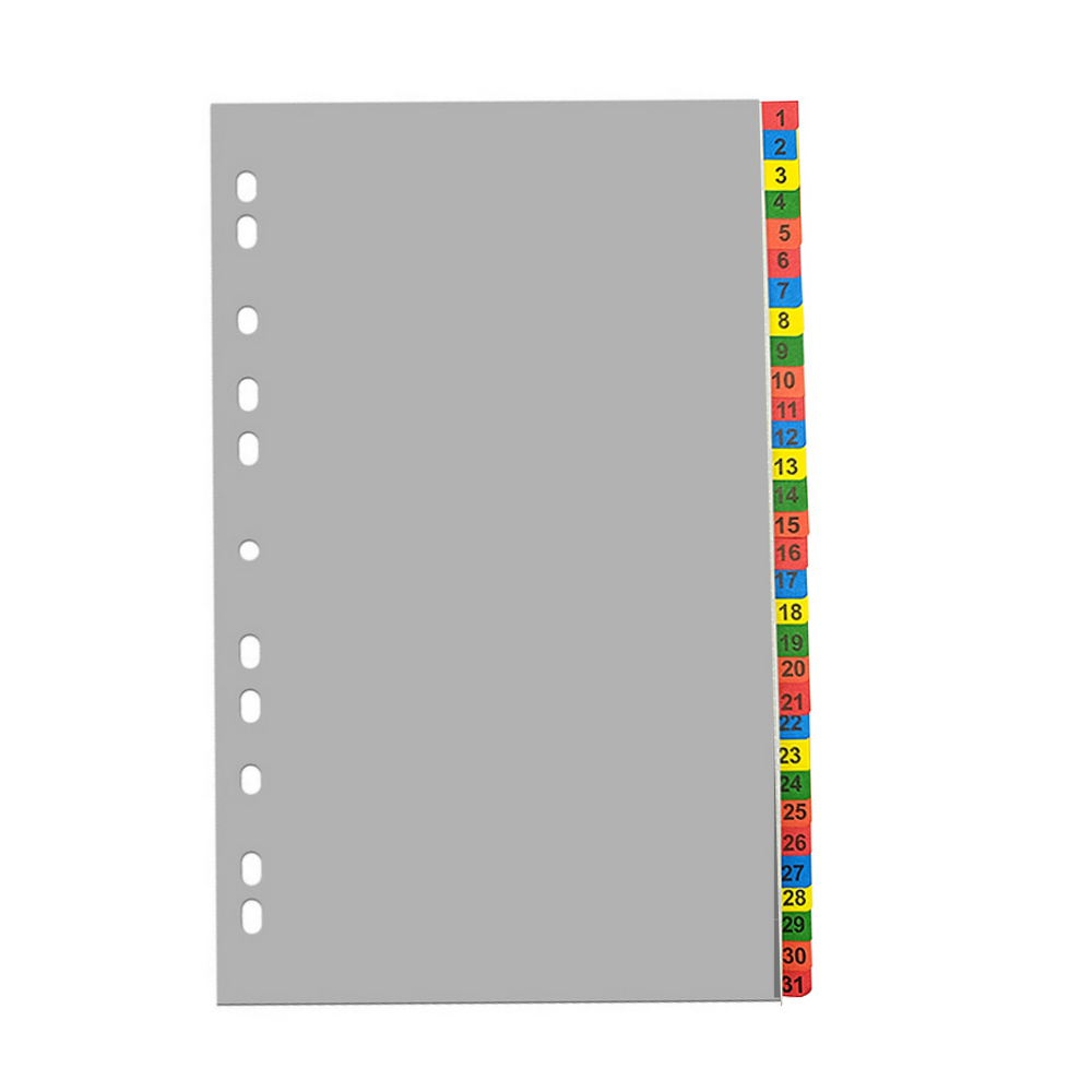 Index plastic color, A4+, extra wide, 120 microni, numeric 1-31, Optima