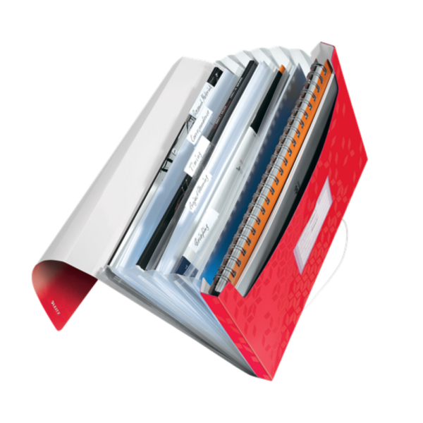 9 compartimente extensibile cu index, pentru identificarea rapida a continutului Un compartiment frontal fix, pentru stocarea diverselor documente, accesorii sau