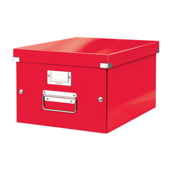 Cutie depozitare LEITZ WOW Click&Store, carton laminat, pliabila, cu capac si maner,28x20x37cm rosu