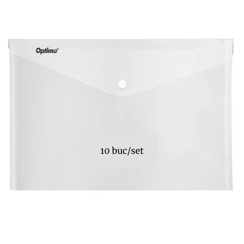 Mapa PP protectie documente A4 landscape, inchidere cu capsa, 10/set, Optima – transparent