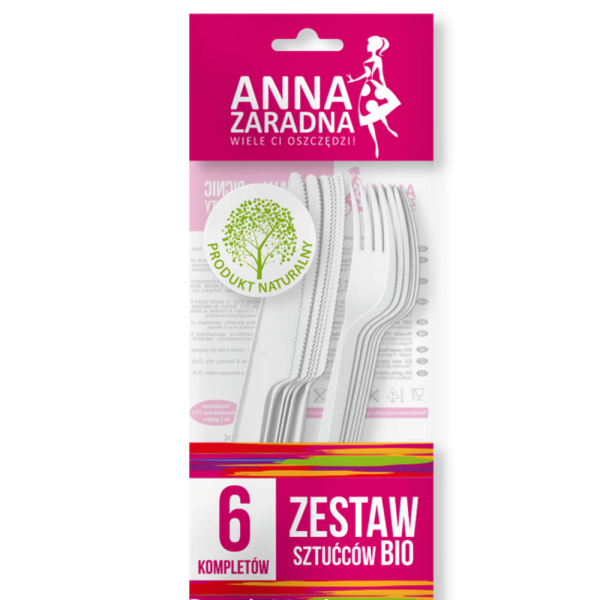 Tacamuri (cutit + furculita) din material biodegradabil, 16.5cm, 6+6 buc/set, Anna Zaradna – albe