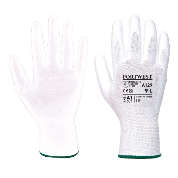 Mănuși PU Palm fără latex – cutie completă (480) – Alb