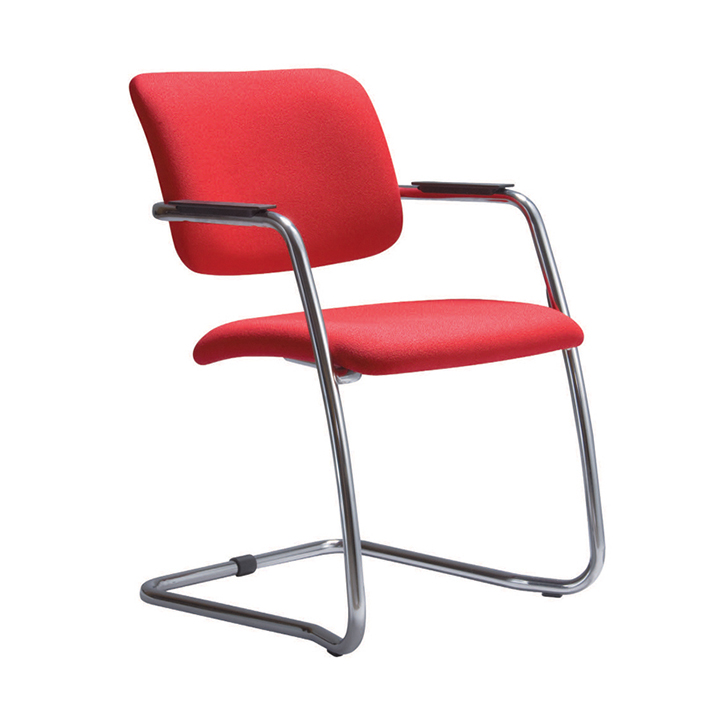 Scaun vizitator cu șezut și spătar tapițat, talpă sanie cromată, brațe PP.
