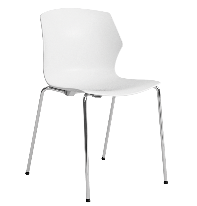 Cadrul scaunului No-Frill-223-A este din oțel rezistent vopsit (alb sau crom) cu patru picioare, fără brațe, dedicat folosirii intense.