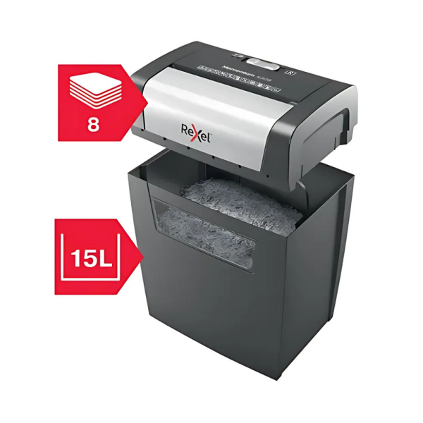 Puterea de a distruge mai multe documente! Distrugatorul Rexel Momentum X308 distruge pana la 8 coli de hartie o data.