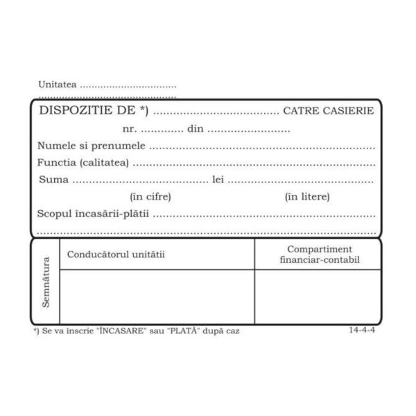 Dispozitie plata casierie, format A6, 100 coli/carnet